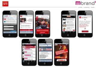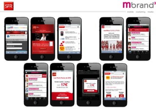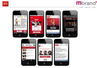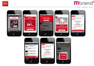 Le document présente diverses campagnes marketing pour des opérateurs de télécommunications en France, incluant Orange, SFR et Bouygues, avec des formats variés comme des bannières et des interstitiels. Chaque campagne vise des objectifs spécifiques tels que le lancement de nouveaux services, l'acquisition de clients et la promotion de la relation client. Les campagnes ciblent principalement les jeunes et les professionnels, avec des redirections vers des applications et des offres en ligne.