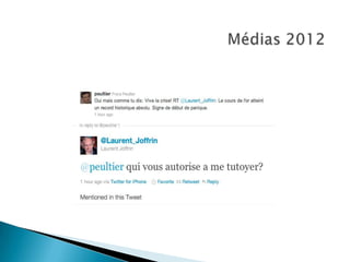 Le document présente un guide des bonnes pratiques pour les réseaux sociaux utilisé par France Télévisions. Il vise à fournir des recommandations pour une utilisation efficace des médias sociaux. Accessible via le lien indiqué dans le document.