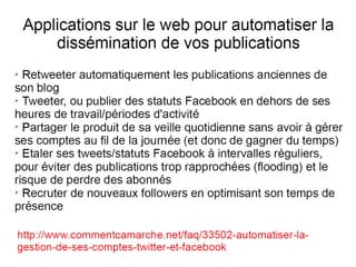 Le document explore la médiation numérique dans les bibliothèques, en abordant divers dispositifs permettant d'organiser l'accès aux ressources numériques et de développer de nouvelles compétences. Il souligne l'importance de la médiation pour stimuler le désir culturel des utilisateurs et propose des stratégies pour optimiser l'engagement à travers des interactions créatives. La transition vers des formats numériques modifie la perception et l'utilisation des collections, mettant l'accent sur la nécessité d'une approche dynamique et participative.