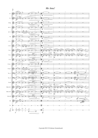 Le document semble être une partition musicale complexe avec des notations pour divers instruments, y compris des flûtes, clarinettes, trompettes et percussions. Il comprend des symboles musicaux et des annotations liées à la performance. La mention de droits d'auteur en 2013 indique qu'il s'agit d'une œuvre protégée.