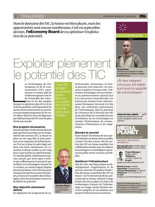 Le document présente l'évolution des technologies de l'information et de la communication (TIC) en Suisse, soulignant son potentiel et ses lacunes par rapport à la compétitivité internationale. La Suisse se classe bien dans les infrastructures et le cadre légal, mais doit améliorer l'utilisation des technologies pour capitaliser sur ses atouts. L'édition aborde également les défis et les opportunités pour les startups et les entreprises locales dans le domaine des TIC.