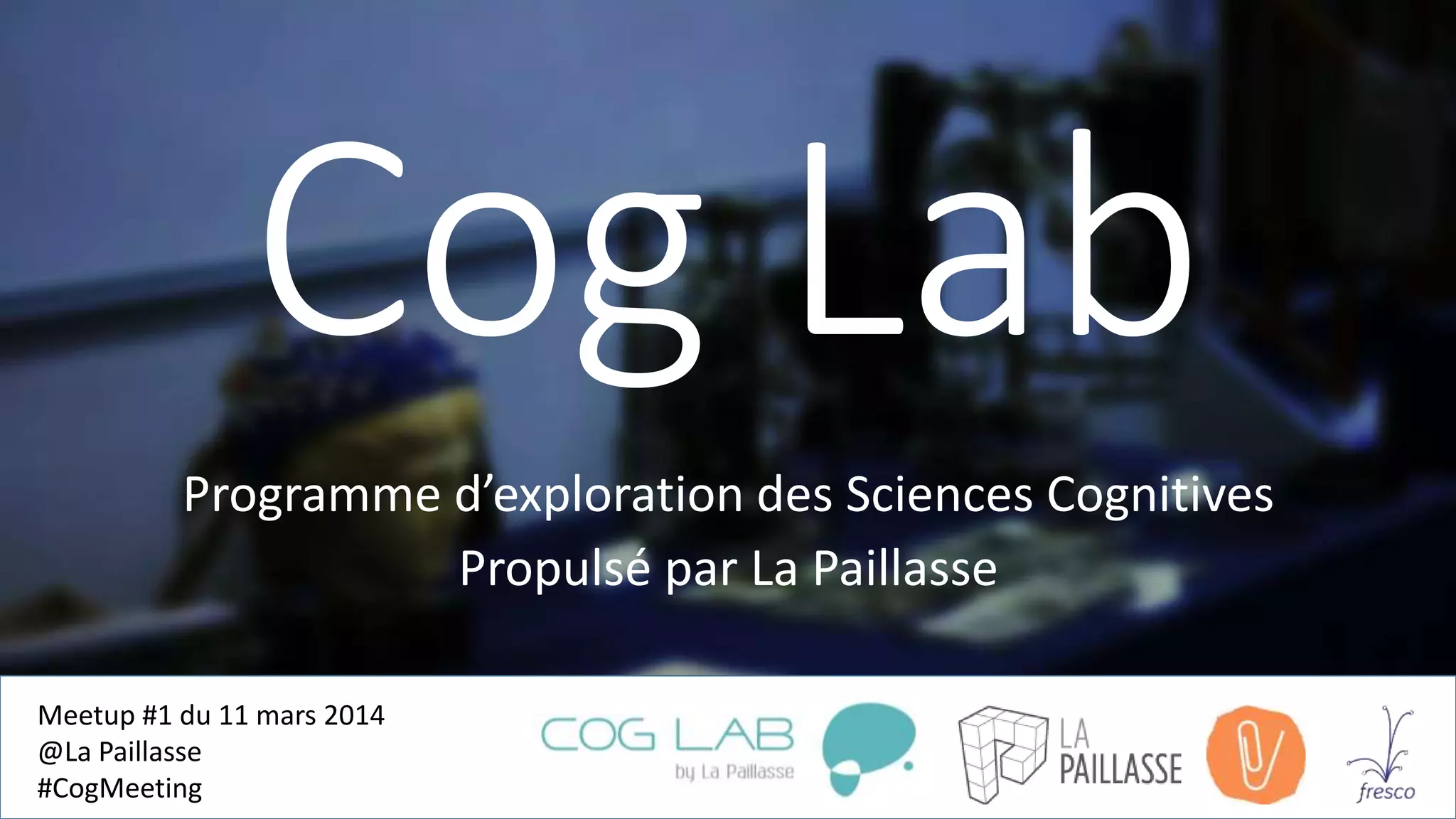 Le meetup cog lab du 11 mars 2014 a présenté un programme axé sur l'exploration des sciences cognitives, incluant des présentations, des échanges d'idées et des projets collaboratifs. La Paillasse, un laboratoire communautaire à Paris, vise à favoriser des expérimentations multidisciplinaires en intelligence artificielle, art numérique, et open science. Ce document souligne l'importance d'une collaboration entre divers acteurs pour innover et vulgariser les sciences cognitives.