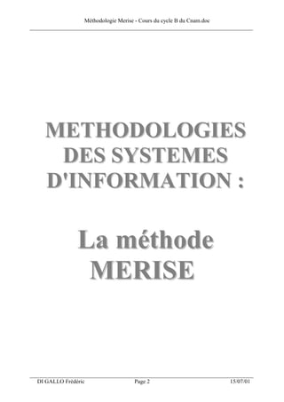 Le document présente la méthode Merise, utilisée pour la conception de systèmes d'information, en détaillant ses principes fondamentalement basés sur la séparation des données et des traitements en modèles conceptuels et physiques. Il décrit les étapes nécessaires à la création d'un système d'information efficace, en intégrant des concepts de modélisation, et souligne l'importance de l'adaptation aux besoins changeants du contexte technologique actuel. En conclusion, il plaide pour une approche qui combine les méthodes traditionnelles avec des techniques modernes pour améliorer la réactivité dans l’élaboration des applications informatiques.
