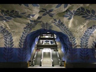 Le métro de Stockholm est considéré comme la plus longue galerie d'art au monde avec 110 km de lignes et 100 stations décorées de manière exceptionnelle. Les décorations incluent des fresques, sculptures et diverses œuvres d'art qui intègrent des éléments naturels comme la roche. Inauguré en 1950, le métro présente des œuvres d'environ 150 artistes, créant une ambiance artistique unique dans chaque station.