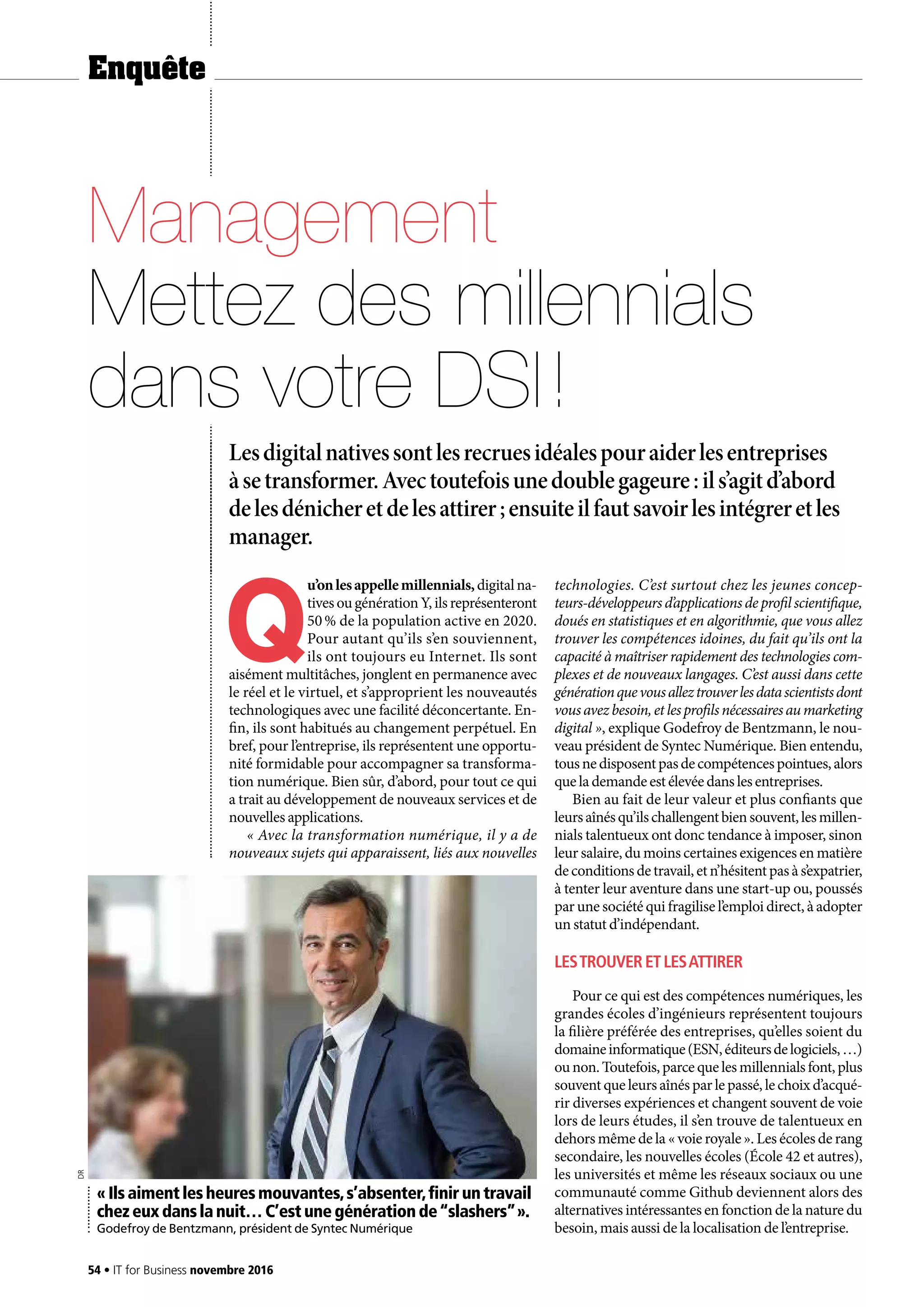 Les millennials, représentant une part importante de la population active, sont des digital natives qui ont des compétences technologiques et une approche innovante du travail. Les entreprises doivent adapter leur management pour attirer et retenir ces talents, en valorisant la flexibilité et la reconnaissance dans les projets. Malgré une pénurie de compétences numériques, des partenariats avec des écoles et des méthodes de recrutement innovantes peuvent aider à répondre aux besoins croissants en matière de transformation digitale.