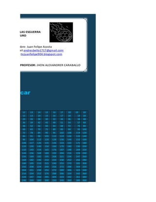 Le document présente la table de multiplication de 1 à 20. Chaque ligne contient les résultats de la multiplication d'un nombre par tous les nombres de 0 à 20. Les résultats sont organisés en format tabulaire pour une consultation facile.