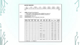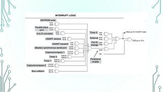 Le document présente une introduction au microcontrôleur PIC 16F887, détaillant ses caractéristiques techniques, notamment sa consommation, son architecture RISC, et ses ports d'entrée/sortie. Il aborde également la programmation des microcontrôleurs, les interruptions, ainsi que les timers et modules intégrés pour le traitement des signaux. Enfin, le document explique le fonctionnement d'un convertisseur analogique-numérique et des modules CCP pour la capture, la comparaison et le PWM.