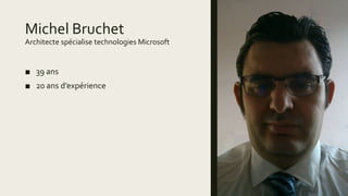 Le document présente une architecture de microservices et les différentes strates d'un système d'information, telles que la strate métier, fonctionnelle, applicative et technique. Michel Bruchet, architecte spécialisé en technologies Microsoft, propose également des informations sur son livre sur le développement ASP.NET Core 2 et sur une plateforme e-commerce. Le contenu aborde les composants, fonctions, services et techniques nécessaires à la création d'applications robustes et performantes.