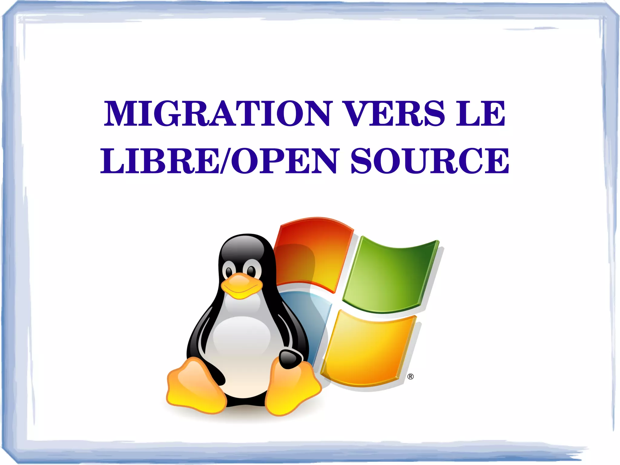Le document traite de la migration vers des solutions logicielles libres et open source, en expliquant les avantages tels que la réduction des coûts et l'interopérabilité. Il détaille les types et modes de migration (partielle, totale, big bang, transition progressive) ainsi que des bonnes pratiques à suivre pour garantir le succès du processus. Des exemples de migrations réussies dans diverses organisations illustrent les économies réalisées grâce à cette transition.
