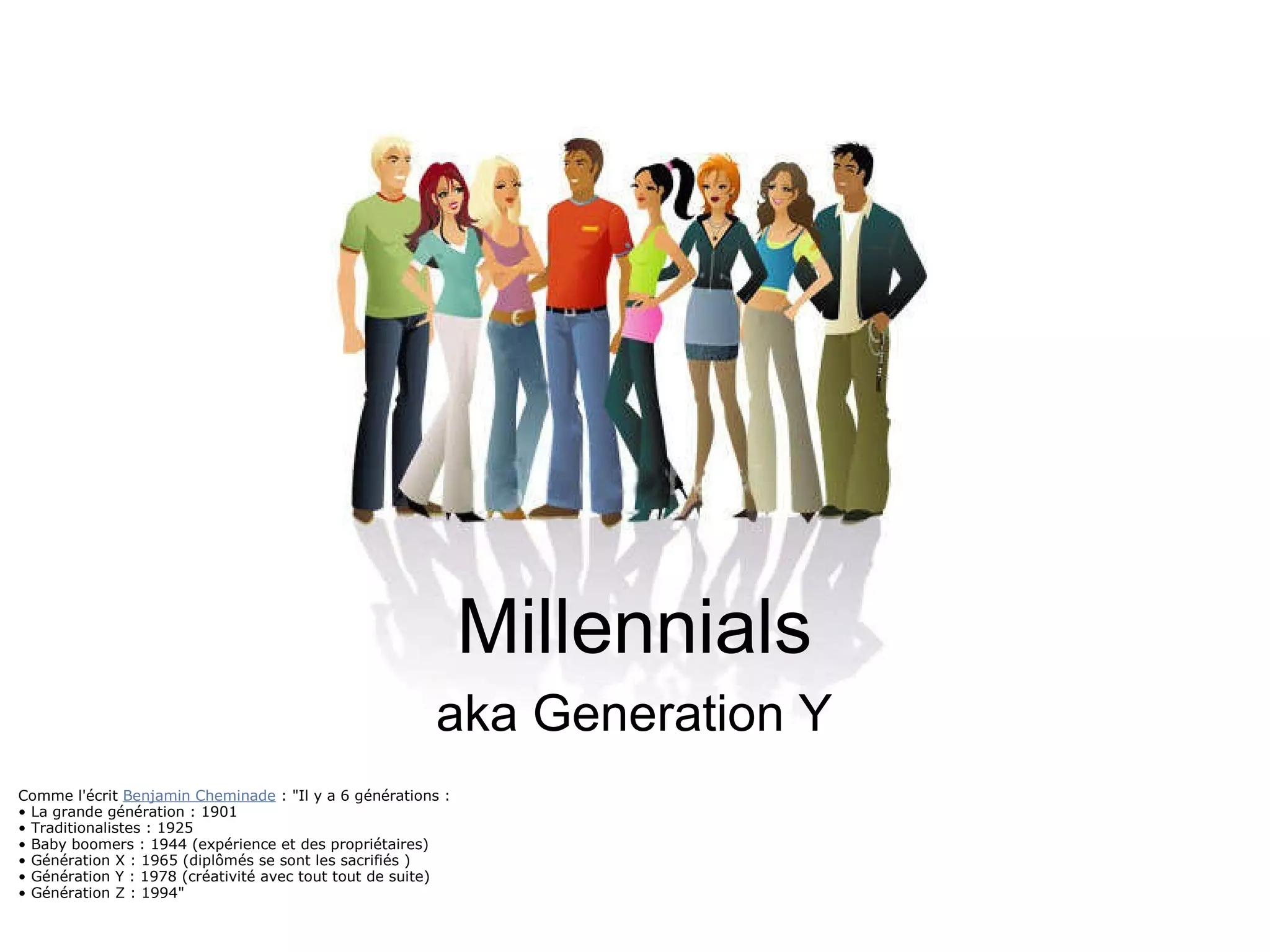 La génération Y, également appelée millennials, désigne les individus nés entre 1978 et 1994, souvent caractérisés par leur créativité, leur impatience et leur interconnexion. Ces traits modifient les approches en entreprise, nécessitant une révision des méthodes de recrutement et de management pour attirer et encadrer ces jeunes professionnels. En parallèle, la génération Z, qui suit, continue de faire face à des défis similaires liés à la technologie et aux attentes du marché du travail.