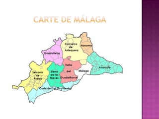 La casbah est l'ancienne résidence des rois marocains. La rue Larios à Malaga est centrale, animée par de nombreux magasins et des personnes se déguisant pour mendier. 'El cenachero' représente une image emblématique des plages de Malaga.