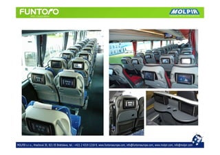 Le document décrit un système multimédia innovant pour le divertissement à bord, capable d'accueillir jusqu'à 72 utilisateurs simultanément, avec des fonctionnalités avancées telles que le streaming de films, de la musique, des photos, et des jeux. Il met également en avant des options de communication pour les annonces de sécurité et de service, ainsi que des outils pour mesurer la satisfaction des passagers et intégrer de la publicité. Le système est conçu pour être fiable, facile à utiliser et techniquement adapté à l'industrie automobile.