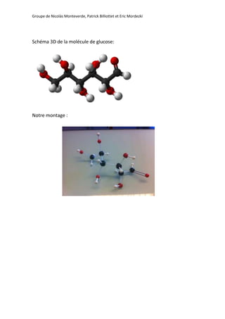 Le document présente des modèles moléculaires de l'éthanol et du glucose. Il inclut des schémas 3D des deux molécules. Des montages spécifiques sont également mentionnés pour visualiser les structures.