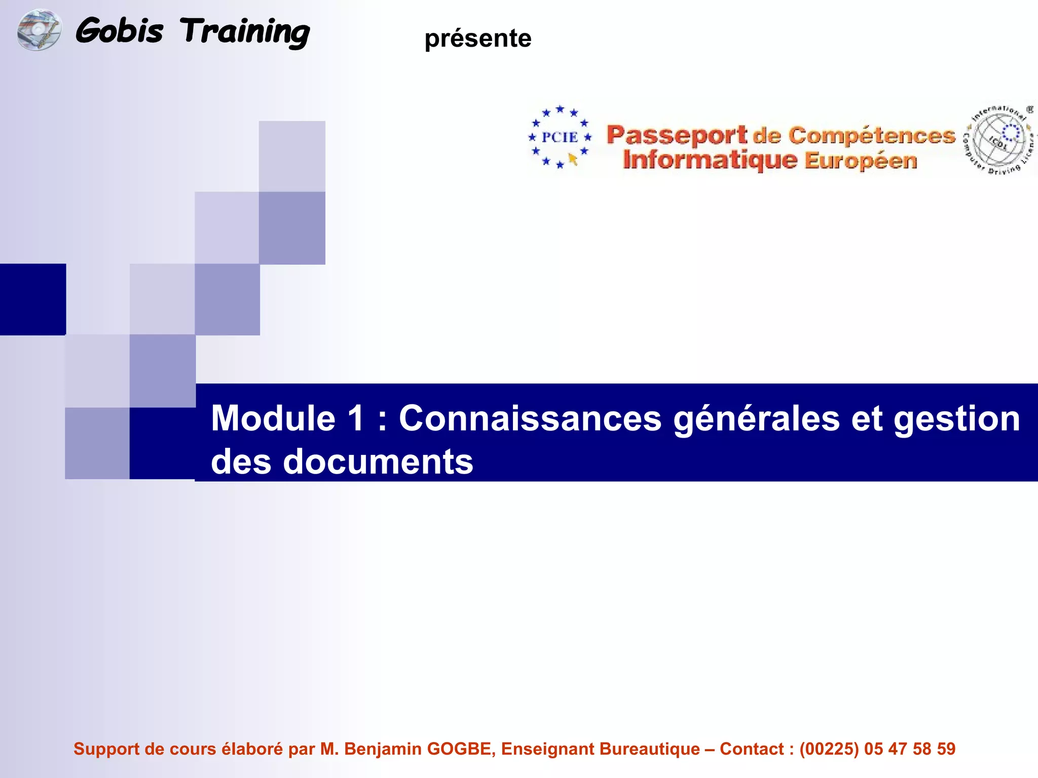 Le document présente les connaissances essentielles sur la gestion des documents informatiques et l'utilisation de systèmes d'exploitation, notamment Windows. Il couvre des sujets tels que la gestion des fichiers, l'organisation des dossiers, la configuration de l'environnement utilisateur, ainsi que les outils et accessoires disponibles dans Windows. Des instructions détaillées sont fournies pour effectuer des tâches courantes comme la création de dossiers, l'installation d'imprimantes et la maintenance du disque.