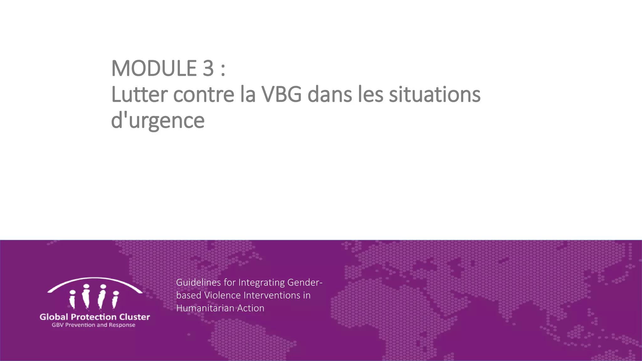 Le document traite des interventions contre la violence basée sur le genre (VBG) dans les situations d'urgence, en soulignant les risques préexistants et spécifiques à ces contextes. Il insiste sur la nécessité d'intégrer des approches adaptées pour protéger les groupes les plus vulnérables et réduire les risques de VBG tout en répondant aux besoins immédiats des personnes affectées. Enfin, il met en avant l'importance d'une collaboration entre divers acteurs humanitaires pour prévenir et répondre à la VBG, tout en garantissant le respect des droits des survivants.