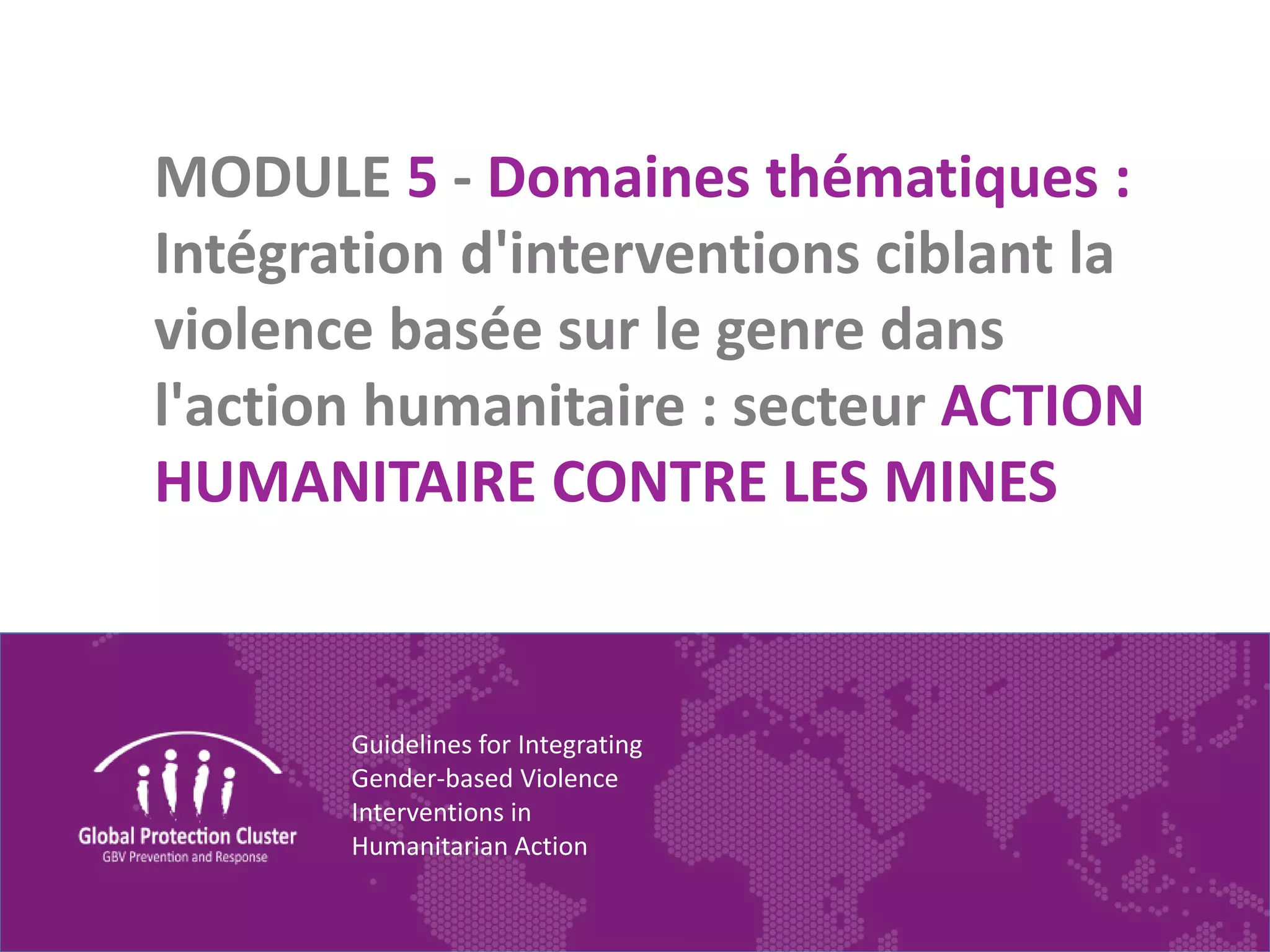 Le document fournit des directives sur l'intégration des interventions concernant la violence basée sur le genre (VBG) dans le secteur de l'action humanitaire contre les mines, soulignant l'importance de la prévention et de la rétroaction des groupes à risque. Il met en avant la nécessité d'inclure des considérations de VBG dans toutes les phases de la planification, de la mise en œuvre et de l'évaluation des interventions humanitaires. Les acteurs concernés sont encouragés à élaborer des plans d'action et à mobiliser des ressources pour atténuer les risques de VBG dans leurs activités.