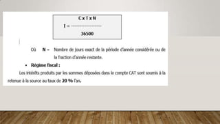 Le document présente un cours sur le système bancaire tunisien, décrivant les missions de la Banque centrale, le rôle et le fonctionnement des banques, ainsi que les produits et services financiers destinés aux particuliers et aux entreprises. Il aborde également des concepts clés tels que les opérations bancaires, les crédits, et les exigences d'accès à la profession bancaire. Enfin, il traite des spécificités des produits islamiques et des conditions d'admission sur le marché financier.