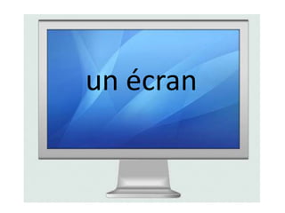 Le document énumère les composants d'un ordinateur, notamment l'écran, le clavier, la souris, le cd-rom, l'imprimante et l'ordinateur portable. Il traite également des activités que l'on peut réaliser sur un ordinateur, telles qu'envoyer des emails, surfer sur Internet, chatter et télécharger des fichiers. Ces éléments mettent en avant les usages modernes de l'informatique.