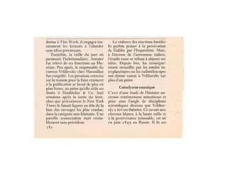 Le document présente les idées d'Immanuel Velikovsky, abordant des théories controversées sur les événements catastrophiques de l'histoire terrestre. Fred Warshofsky, dans cette sélection du Reader's Digest de mars 1976, analyse les implications de ces théories. Il invite également les lecteurs à explorer davantage en visitant un site web dédié.
