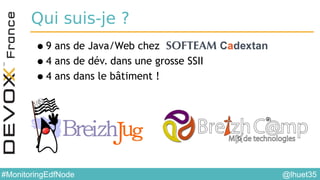 Le document présente un projet de monitoring d'un compteur EDF utilisant Node.js, avec des détails techniques sur le montage, les composants et le code nécessaire. Il explique le fonctionnement avec un protocole Teleinfo et fournit des exemples d'utilisation sur Raspberry Pi ainsi que le stockage des données dans MongoDB. Des liens vers les dépôts GitHub et des informations sur l'application web associée sont également fournis.