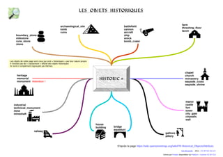 Le document fournit une vue d'ensemble sur les objets historiques dans OpenStreetMap, en mettant l'accent sur la distinction entre statues artistiques et mémorielles ainsi que sur les différentes étiquettes à utiliser. Il aborde également les définitions de 'monument', le processus de tagging pour les statues, et propose des liens vers des ressources utiles et des outils pour la cartographie historique. Enfin, des exemples concrets, comme la statue équestre de Vercingétorix, illustrent l'importance de la spécification et de la classification des objets historiques.