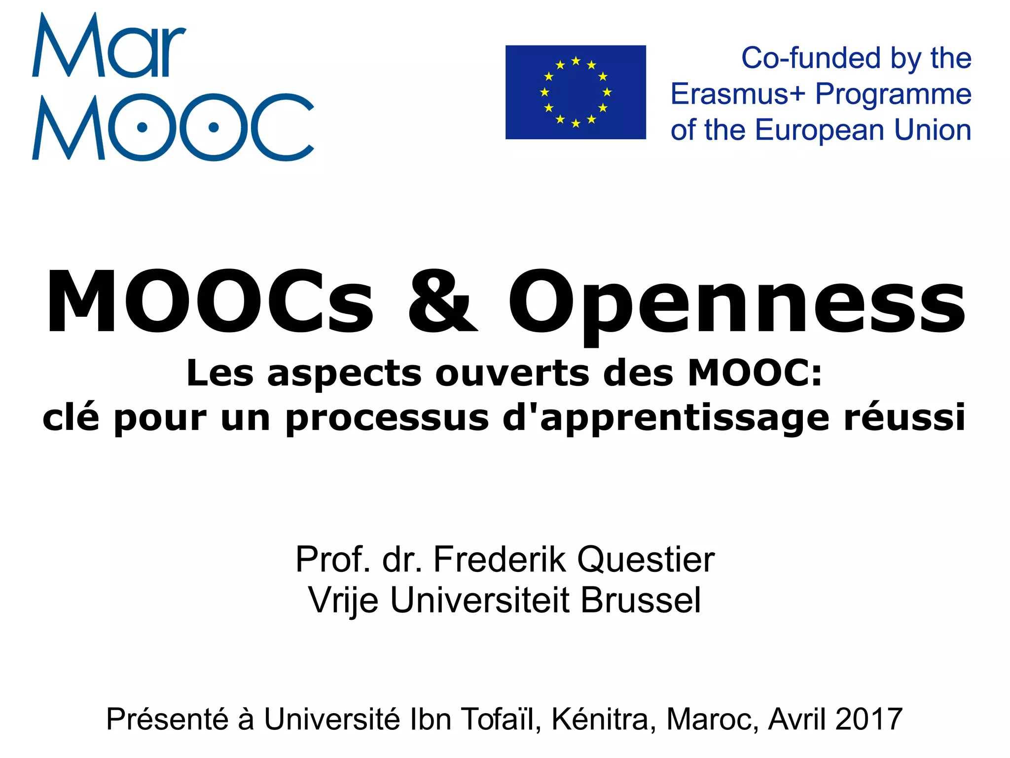 La présentation examine les aspects ouverts des MOOC et leur rôle dans l'apprentissage réussi, en soulignant l'importance des ressources éducatives libres et des licences ouvertes. Elle distingue différents types de cours en ligne ouverts, tels que les cMOOC et xMOOC, et discute de l'importance de la pédagogie ouverte. Enfin, elle met l'accent sur la nécessité d'un accès libre et d'un processus éducatif ouvert pour favoriser l'innovation dans l'éducation supérieure.