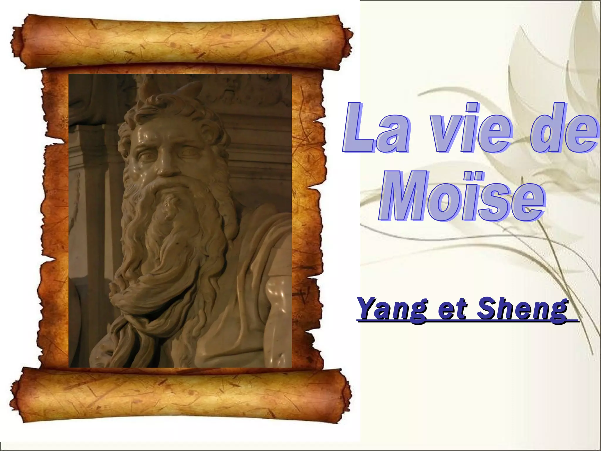 Le document retrace la vie de Moïse, de sa jeunesse en Égypte à sa mission de libération des Hébreux de l'esclavage. Il aborde des événements clés tels que la révélation au buisson ardent, la remise des Dix Commandements, et son décès avant d'atteindre la Terre promise. Un film est également mentionné, décrivant ces moments marquants de sa vie.