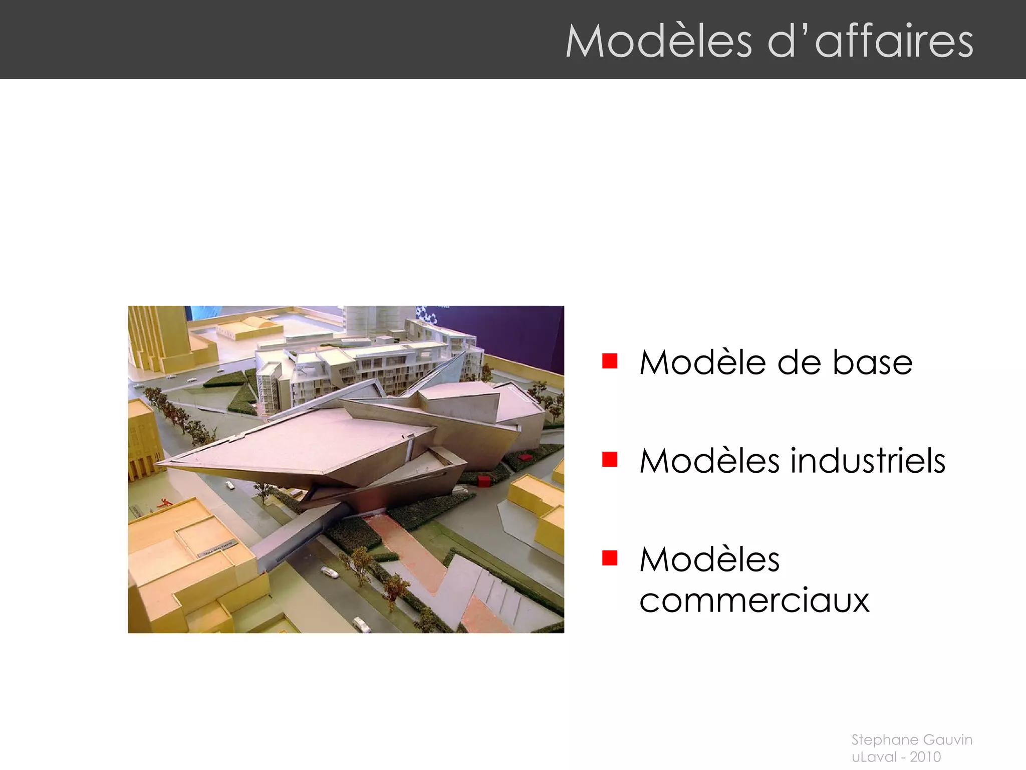 Le document discute des modèles d'affaires, mettant en avant la création de valeur et la gestion des coûts dans différents secteurs, notamment celui de l'information. Il souligne également l'importance de l'innovation, des relations clients et de la flexibilité organisationnelle, favorisées par les avancées technologiques et les modèles d'affaires ouverts. Enfin, il mentionne les défis contemporains auxquels les entreprises doivent faire face pour rester compétitives dans un environnement en constante évolution.
