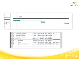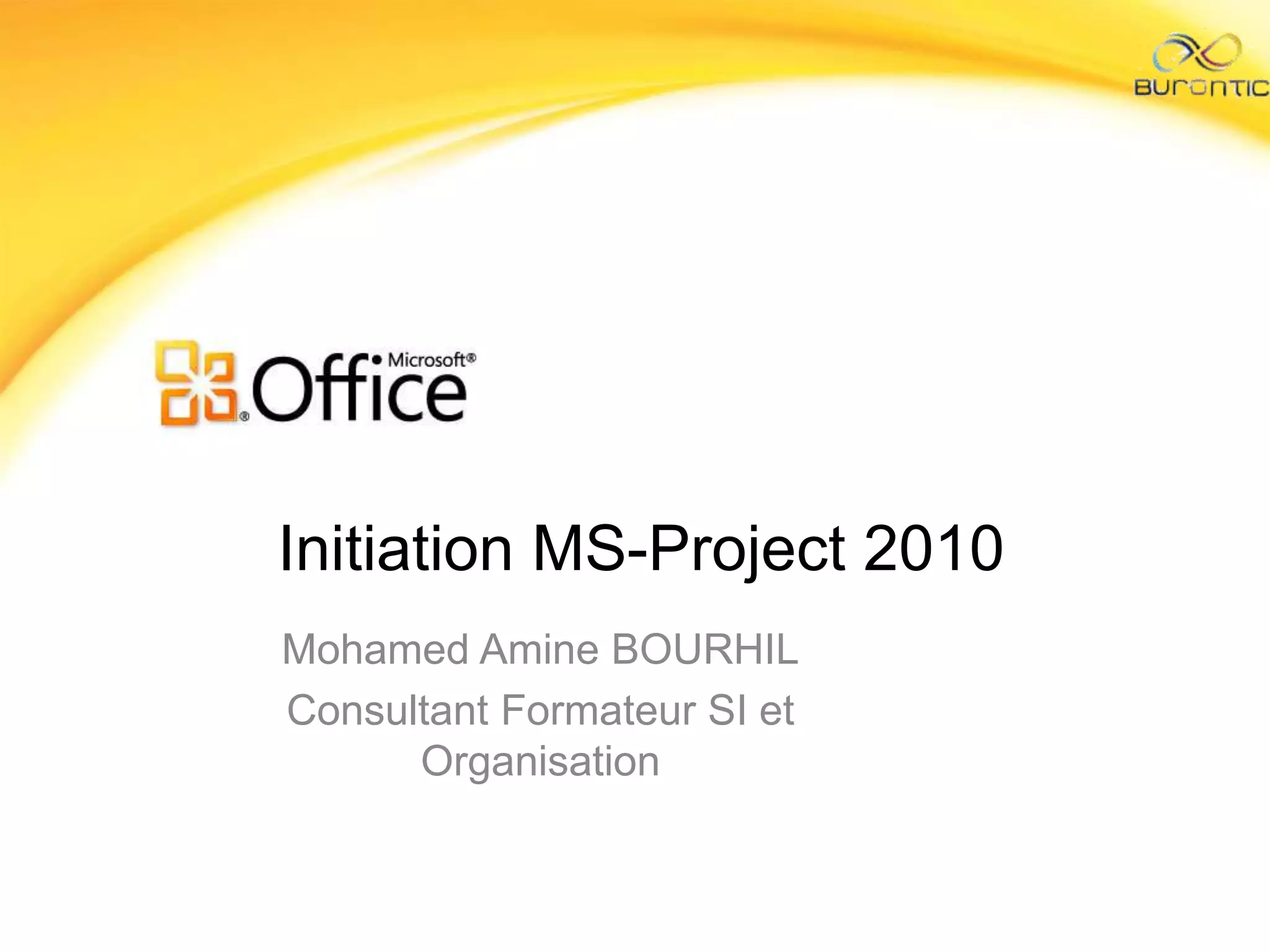 Le document présente une initiation à Microsoft Project 2010, axée sur les techniques de gestion de projet et l'utilisation du logiciel pour créer des diagrammes de Gantt. Il détaille les étapes de planification, la gestion des tâches, les relations entre celles-ci, et les outils de suivi, tout en proposant un exemple pratique avec la culture d'un potager. Le document souligne également l'importance d'une navigation aisée et du suivi des avancements pour une gestion efficace des projets.