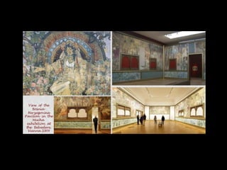 Le document explore la vie et l'œuvre d'Alfons Mucha (1860-1939), un artiste célèbre pour son style Art Nouveau. Il présente ses portraits, affiches, et créations variées, notamment pour Sarah Bernhardt, ainsi que ses contributions à l'Exposition Universelle de 1900 et l'Épopée Slave. Le document illustre l'impact de Mucha sur l'art et le design, mettant en avant ses travaux significatifs au cours de sa carrière.