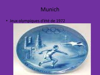 Le document traite du massacre de Munich lors des Jeux Olympiques d'été de 1972, où l'équipe israélienne a été attaquée par le groupe Septembre noir. Il souligne les failles de sécurité qui ont permis cet incident tragique et mentionne les tentatives infructueuses de négociation pour libérer les otages. En raison de ces événements, l'équipe israélienne a finalement décidé de se retirer des compétitions.