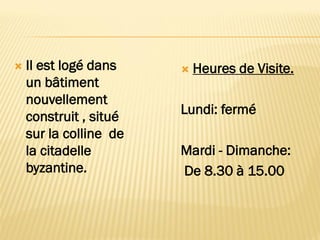 Le musée byzantin de Kastoria, fondé en 1989, possède une vaste collection d'icônes byzantines et post-byzantines, exposées dans un bâtiment moderne sur une colline. Les œuvres, datant du 12ème au 17ème siècle, proviennent de 71 églises byzantines et reflètent l'héritage culturel de la Grèce. Ce musée est essentiel pour comprendre l'art et la spiritualité du monde chrétien orthodoxe.