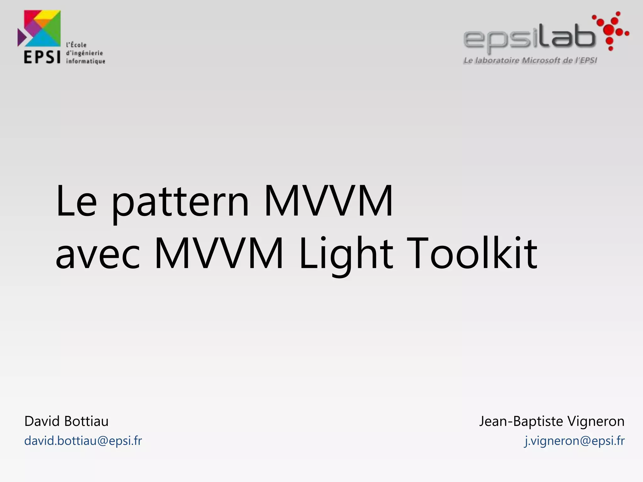 Le document présente l'architecture MVVM (Model-View-ViewModel), en mettant l'accent sur l'utilisation du MVVM Light Toolkit pour faciliter l'implémentation de ce patron de conception dans les applications .NET. Il explique la structure des ViewModels, le binding des données et commandes, ainsi que l'utilisation d'un ViewModelLocator pour gérer les instanciations et le cycle de vie des ViewModels. En outre, il aborde les design ViewModels pour le développement d'interfaces utilisateur et la messagerie pour faciliter la communication entre différentes classes.