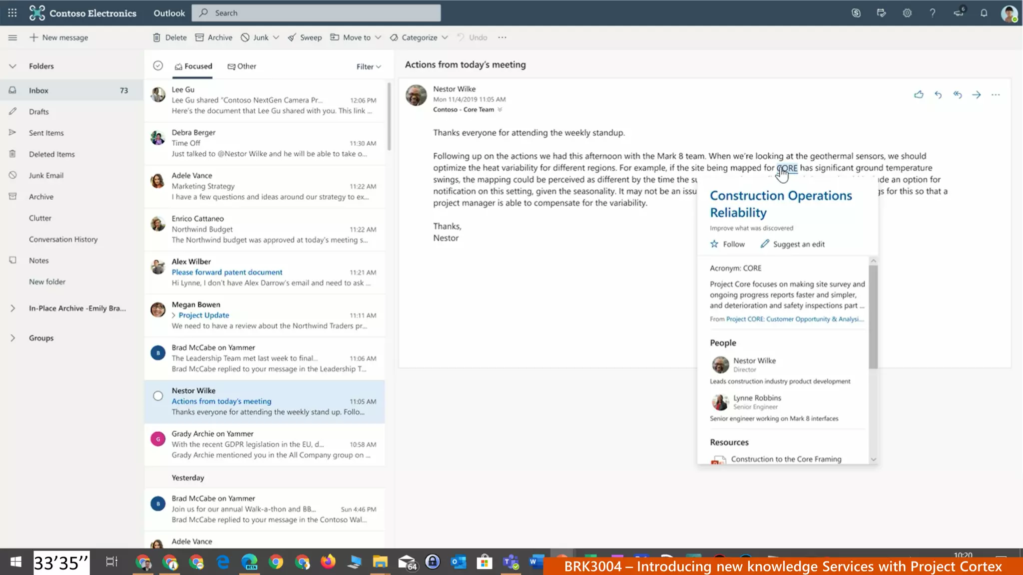 Le document présente les nouveautés annoncées lors de la conférence Microsoft Ignite 2019, incluant des améliorations pour Microsoft 365, SharePoint et OneDrive, notamment des limites d'upload augmentées et des outils de migration améliorés. Il aborde également des fonctionnalités liées à la collaboration, la gestion de contenu et la sécurité, ainsi que des innovations dans le cadre du projet Cortex visant à optimiser la gestion des connaissances. Enfin, plusieurs points importants concernant Microsoft Teams et Yammer sont également mentionnés, mettant en avant des améliorations sur la communication et la gestion des tâches.