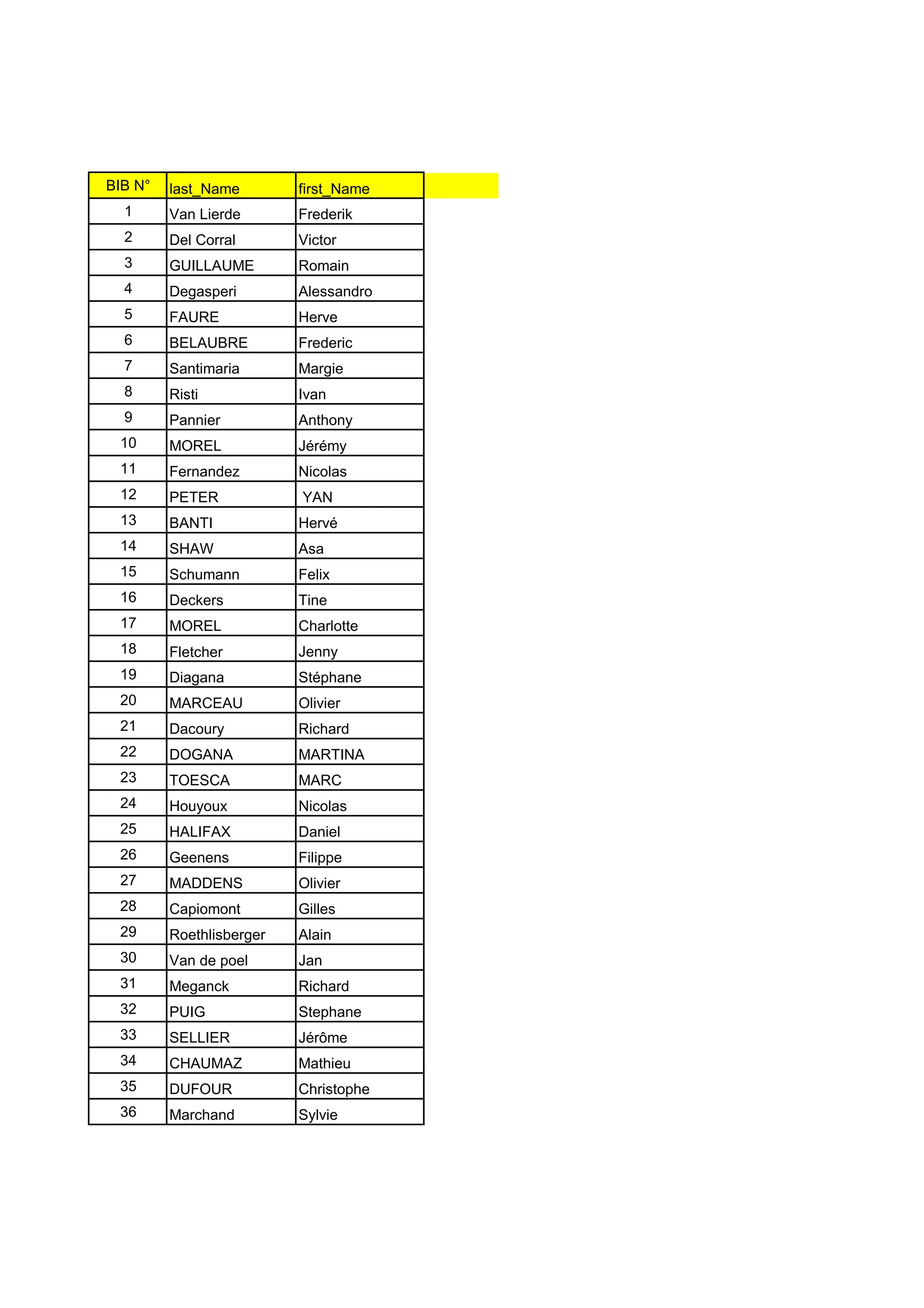 Le document consiste en une liste de noms avec leurs prénoms associés, représentant possiblement des participants ou des membres d'un groupe. Chaque entrée est numérotée, allant de 1 à 573, sans indication d'autres informations contextuelles. Il est probable que cette liste soit utilisée pour un registre, un événement ou une organisation spécifique.