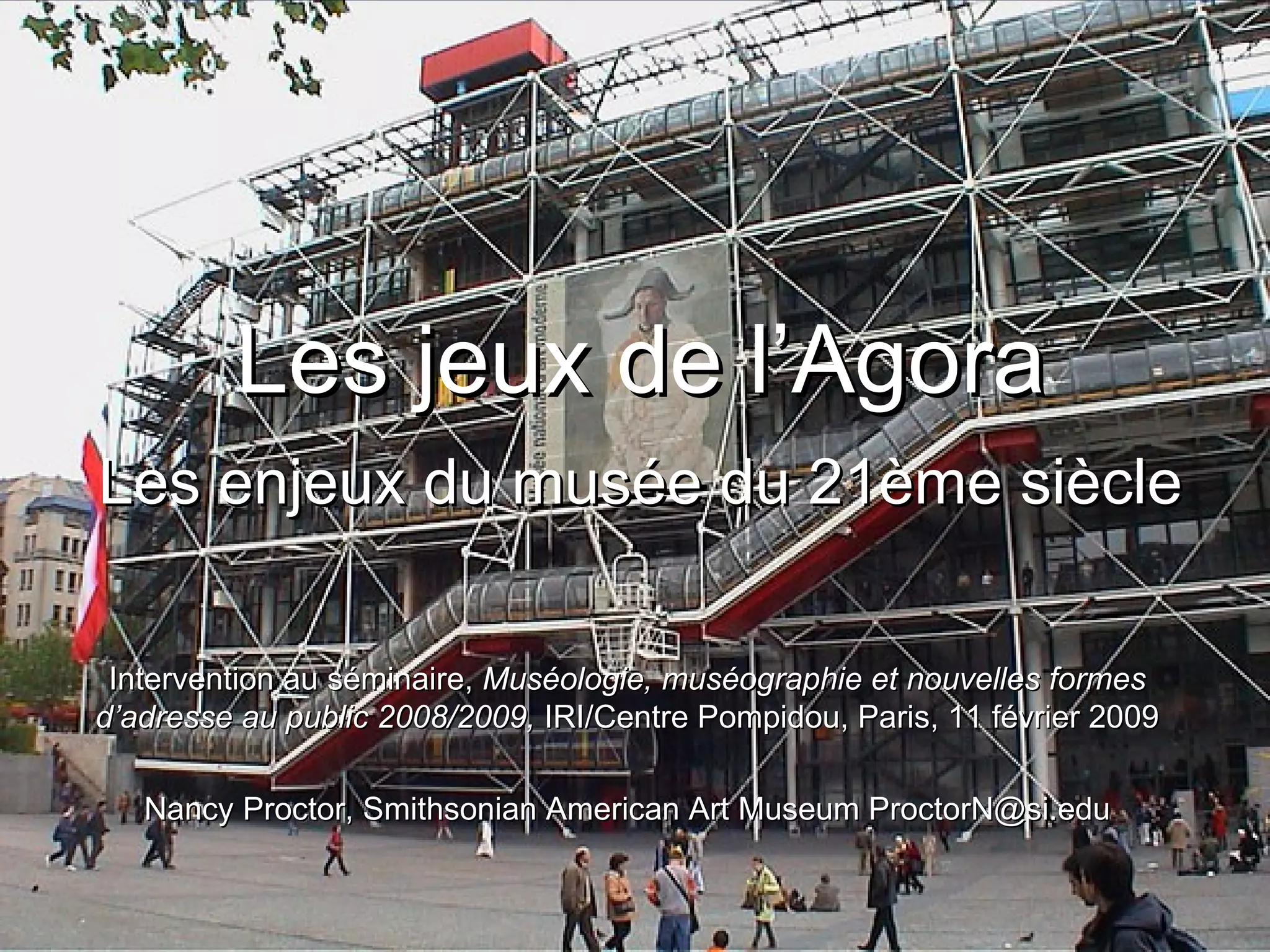 Le document aborde les défis des musées au 21ème siècle, en mettant l'accent sur l'institution Smithsonian et son rôle dans la diffusion de la connaissance. Il présente également le jeu 'Ghosts of a Chance', un jeu de réalité alternative au musée qui engage les visiteurs de manière interactive à travers diverses plateformes. Ce projet vise à transformer l'expérience muséale en favorisant la participation créative et l'interaction des visiteurs avec l'art.