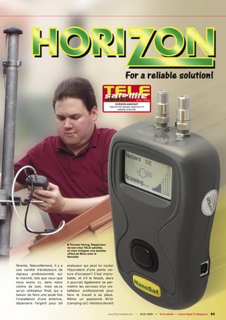Le rapport teste le nanosat de Horizon, un analyseur de signal conçu pour faciliter l'installation des antennes satellite. Il permet une orientation rapide et précise, offrant des fonctionnalités telles que des instructions visuelles sur l'écran pour guider l'utilisateur lors du pointage. Le nanosat se démarque par sa facilité d'utilisation, sa légèreté et sa capacité à stocker les configurations pour plusieurs satellites, rendant l'installation accessible aux amateurs comme aux professionnels.