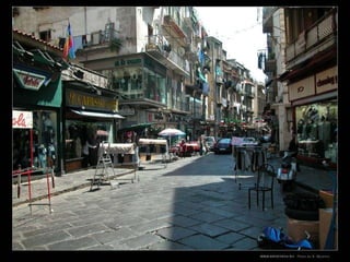 Le document évoque divers lieux et monuments emblématiques de Naples, tels que la basilique Saint François de Paule, la cathédrale San Gennaro et le Castello del Ovo. Il mentionne également des sites touristiques célèbres à proximité, comme Capri et Pompéi. Enfin, il fait référence à une musique spécifique, ajoutant une dimension culturelle au contenu.