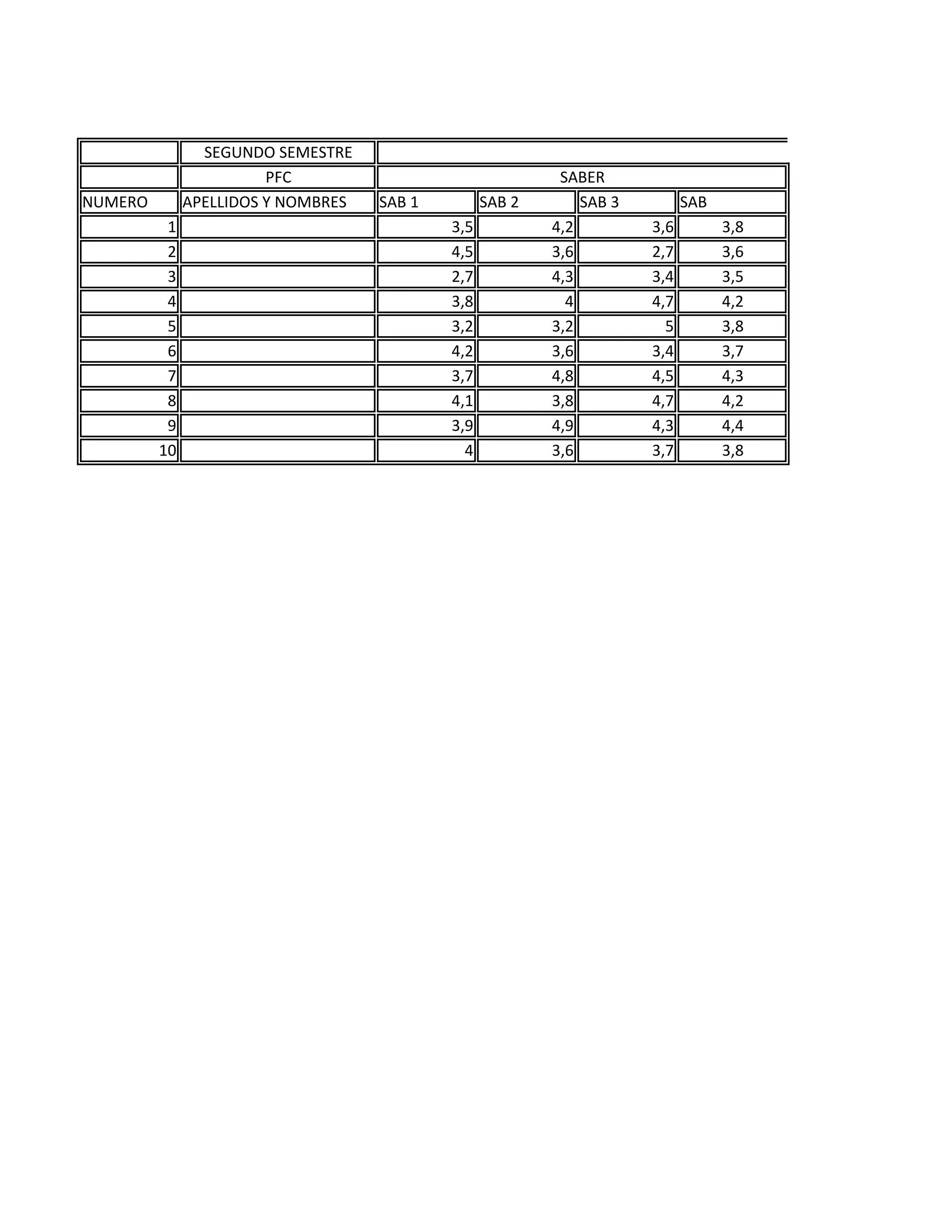 Le document présente une série de notes et de résultats d'évaluations pour divers étudiants durant plusieurs semestres, incluant des scores pour différentes sessions d'examens. Les notes varient d'un semestre à l'autre et incluent des évaluations sur divers critères. Les données permettent d'évaluer la performance académique des étudiants sur des périodes spécifiques.