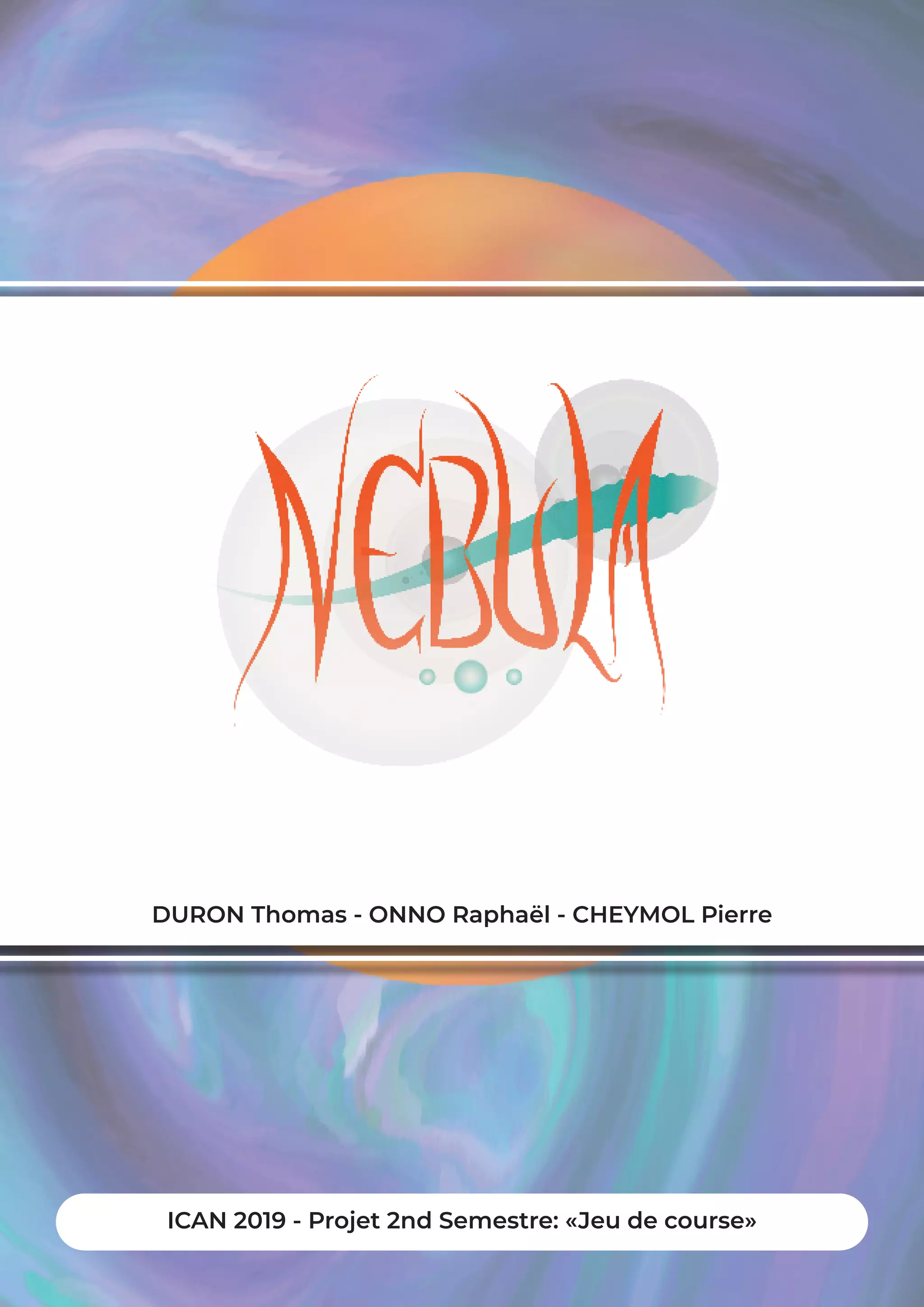 Le document présente le conception d'un jeu de course intitulé 'Nebula', où le joueur pilote un bolide spatial à travers un circuit orbital dans un environnement psychédélique. Le gameplay met l'accent sur la liberté de mouvement, l'accélération gravitationnelle et des mécaniques de dash, avec des objectifs centrés sur la collecte de checkpoints. La direction artistique et le sound design créent une atmosphère immersive, inspirée par des nébuleuses et des sons de guitare, tout en proposant des éléments générés procéduralement.