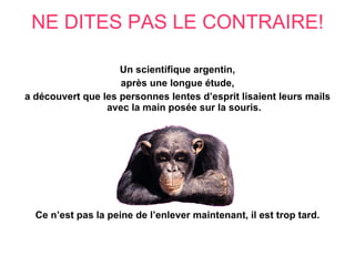 Un scientifique argentin a découvert que les personnes lentes d'esprit lisent leurs e-mails avec la main posée sur la souris. Cette observation a été faite après une longue étude. Le texte suggère qu'il est trop tard pour changer cette habitude.