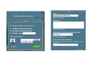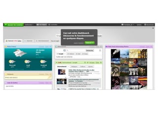Le document décrit les étapes pour créer et personnaliser une page sur Netvibes, en commençant par l'inscription et la confirmation par e-mail. Il aborde également la modification du thème, l'ajout de contenu tel que du texte, des liens, des images et des vidéos via des widgets. Les utilisateurs peuvent également ajouter des liens hypertexte et gérer leur taille dans la page publique.