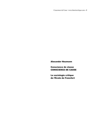 Le document explore la notion de 'conscience de casse', critiquant le marxisme doctrinaire et examinant les conséquences des politiques néo-conservatrices sur les mouvements sociaux contemporains. Il souligne l'impuissance des partis de gauche face à des alliances autoritaires et la montée des discours sécuritaires et populistes. En s'appuyant sur la sociologie critique de l'école de Francfort, l'auteur cherche à déceler les fractures du mouvement émancipateur et à relayer une critique pertinente des situations politiques actuelles.