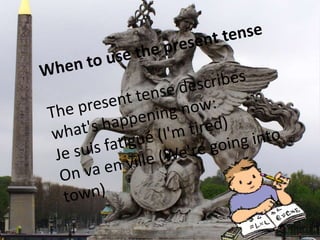 Le document explique la formation du présent des verbes réguliers en français, incluant les verbes en -er, -ir et -re, avec des exemples de conjugaison. Il aborde également les verbes irréguliers courants tels qu'avoir, être, aller et faire avec leurs conjugaisons respectives. Des phrases utiles et des exceptions dans la conjugaison des verbes en -er sont également fournies.