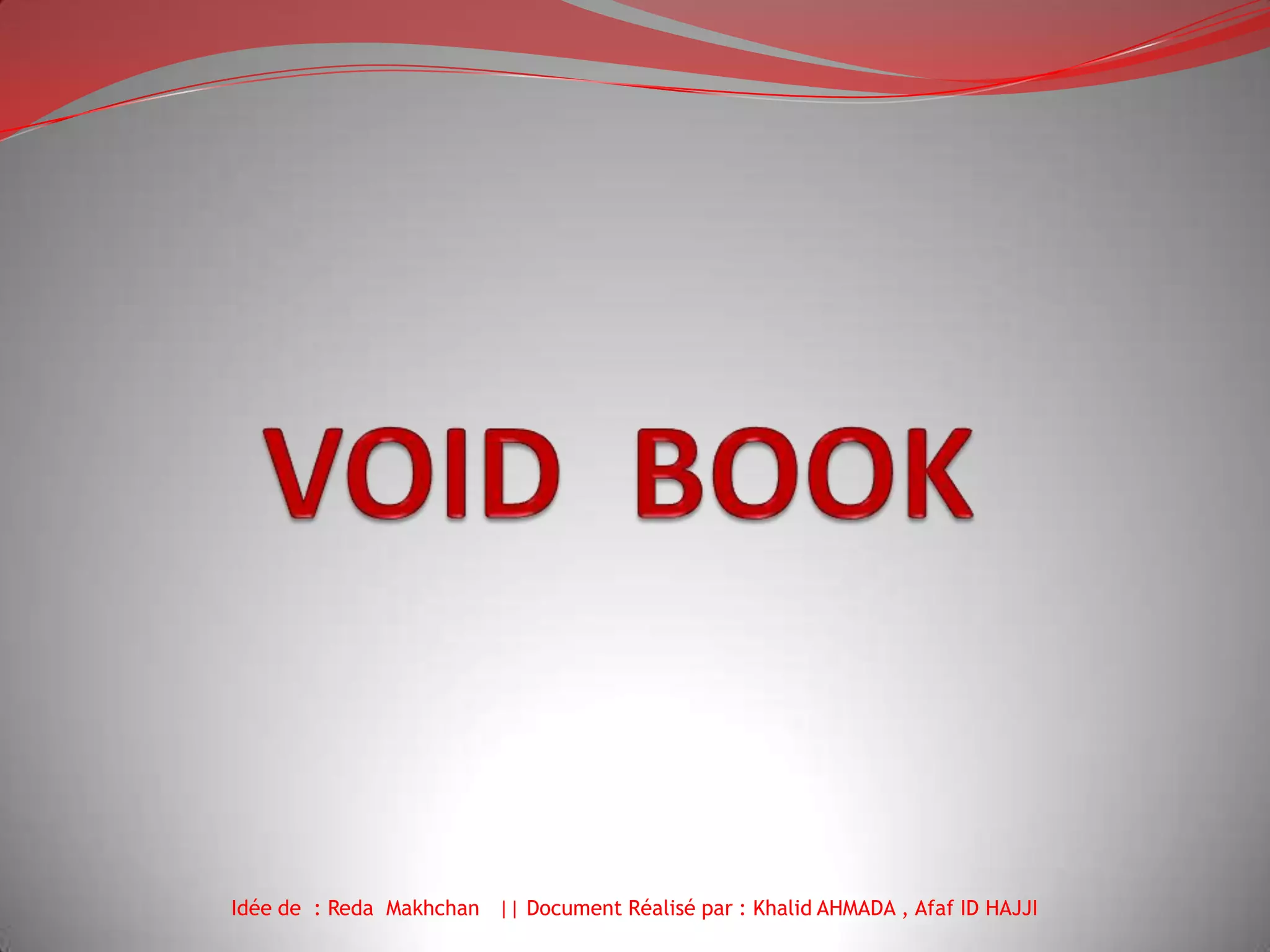 Void Book est une application iPhone développée par la société Void pour visualiser ses réalisations, nécessitant un identifiant et un mot de passe. L'utilisateur peut naviguer à travers les projets et les filtrer par compétences, clients et métiers. Lorsqu'un projet est sélectionné, une page dédiée affiche des détails, un lien vers le projet et des vignettes de projets similaires.