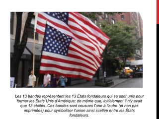 Le document présente des éléments emblématiques de New York, tels que les 13 bandes de la bannière symbolisant les états fondateurs des États-Unis. Il décrit également le Rockefeller Center comme un important complexe commercial et évoque Central Park, un vaste espace vert de 341 hectares. Enfin, il mentionne la Statue de la Liberté, monument célèbre situé sur Liberty Island.