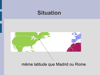 New York City, avec une population de 8.336.697 habitants en 2012, est composée de cinq arrondissements, dont Manhattan, qui a une densité de 27.212 habitants/km2. La ville est célèbre pour des structures emblématiques comme l'Empire State Building et la Statue de la Liberté, et elle possède des espaces verts importants, notamment Central Park, qui est le plus visité et abrite une riche biodiversité. La superficie totale de la ville est de 1.214 km2, dont 785 km2 de terres émergées.