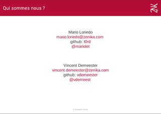 Le document présente une soirée de découverte de Docker, incluant des ateliers pratiques et des discussions sur les concepts fondamentaux de la technologie. Il aborde l'architecture de Docker, ses comparaisons avec les machines virtuelles, et fournit des instructions sur l'installation et l'utilisation de Docker. De plus, plusieurs cas d'utilisation et patterns d'application sont introduits pour faciliter l'adoption de Docker dans le développement d'applications.