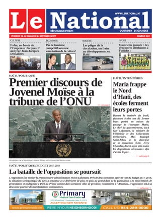 L'opposition haïtienne intensifie les manifestations contre le budget 2017-2018 du gouvernement de Jovenel Moïse, provoquant une détérioration de la situation sociopolitique. Parallèlement, l'ouragan Maria frappe le nord d'Haïti, entraînant la fermeture de plusieurs écoles. Les autorités affirment avoir pris des mesures pour gérer la crise climatique.