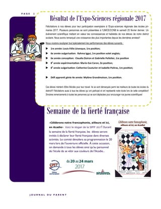 La campagne du mois de la nutrition 2017 vise à aider les Canadiens à améliorer leur relation avec la nourriture en leur fournissant des informations et un soutien. L'école Notre-Dame organise plusieurs activités éducatives et sportives pour encourager une saine alimentation et fêter la fierté française. Des recommandations sont données aux parents pour soutenir une nutrition équilibrée et saine chez les enfants afin de favoriser leur réussite scolaire.